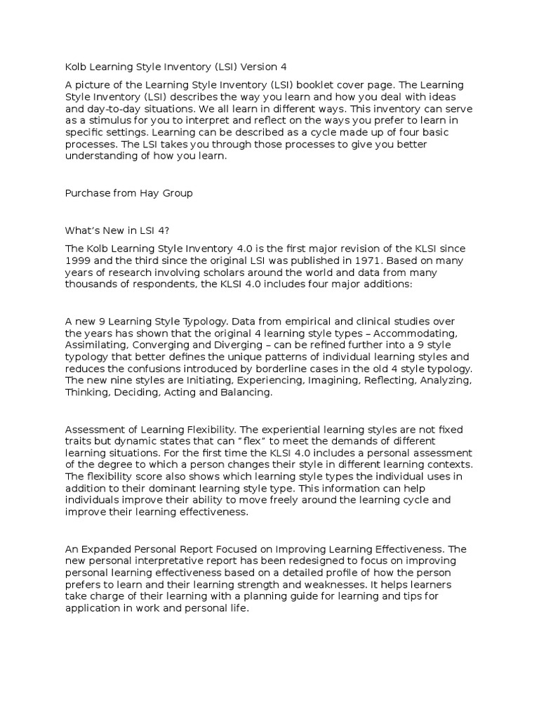 A learning style is an individual's approach to learning based on strengths, weaknesses, and preferences. And knowing yourself as a learner is important if you want to achieve to the best of your ability. When it comes to processing information,your brain is the most important part of your Get Access Check Writing Quality Every individual is unique in their own way, which means we learn differently. My learning styles are: visual, applied, spatial, social, and creative. As a visual learner I prefer to use diagrams, charts, and pictures to further understand. Whereas, an applied learner it’s easiest for me to work with real life objects of real situations · Text preview of this essay: This page of the essay has 1, words. Download the full version above. The idea of learning styles have been around for many years. Benjamin Franklin once said: ‘Tell me and I forget, teach me and I may remember, involve me and I learn’. This quote is all about learning styles and how one does not learn from